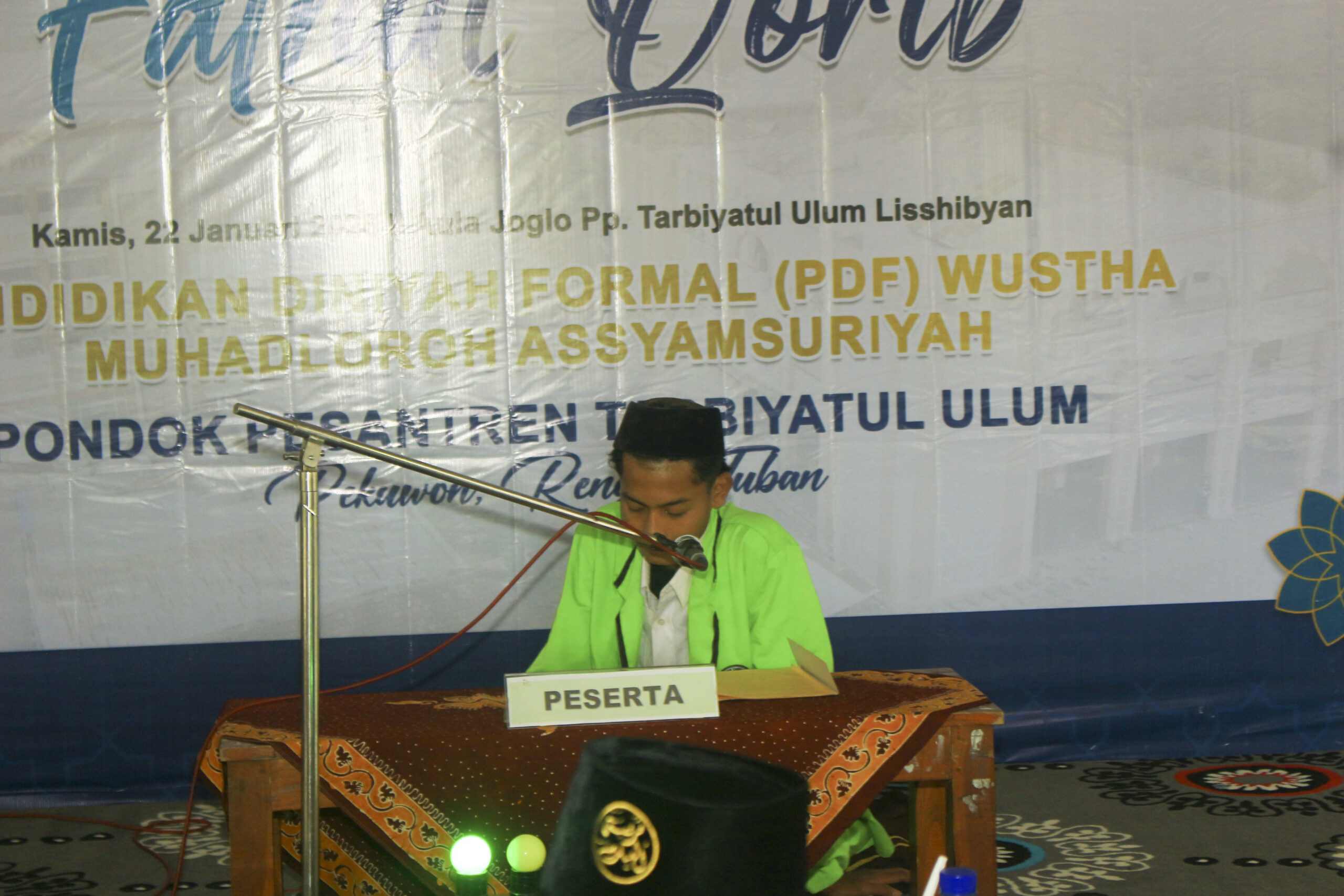 Kamis, (22/01/2026), pukul: 07:30, bertempat di Aula Pusat Pondok Pekuwon dan Joglo Pondok Sibyan, para santri kelas III Wustho PDF Muhadloroh As-Syamsuriyah mengikuti kegiatan Tajribiyah Fathul Qorib.Kegiatan ini merupakan ujian tahap akhir pada jenjang Wustho sebelum para santri melanjutkan ke jenjang Ulya. Dalam tajribiyah ini, para santri dituntut untuk mampu memahami serta memaknai Kitab Fathul Qorib menggunakan ma’na Jawa (ma’na gandul Jowo). Ujian ini menjadi tolak ukur kemampuan santri dalam memahami kitab salaf serta memaknai dengan benar setelah menempuh pendidikan selama tiga tahun di jenjang Wustho.PROSEDUR PELAKSANAAN TAJRIBIYAH FATHUL QORIB